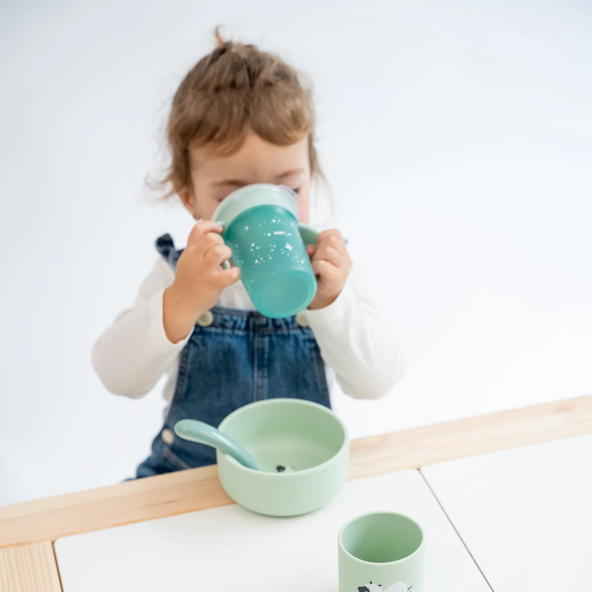 Taza antigoteo 360º: para beber en cualquier punto del borde sin derrames. Se cierra automáticamente cuando el niño deja de beber.