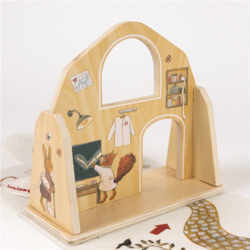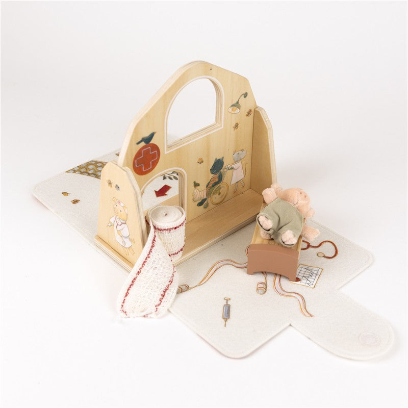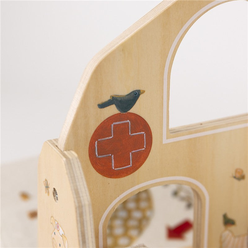 Descubre el hospital de los Mini Amigos, un encantador set de juego portátil que invita a los niños a un mundo de cuidado y juego de rol imaginativo. Diseñado como una acogedora casita de doctor con un práctico asa de transporte, se abre para revelar un entorno médico bellamente ilustrado donde los pequeños amigos pueden ser tratados y cuidados.