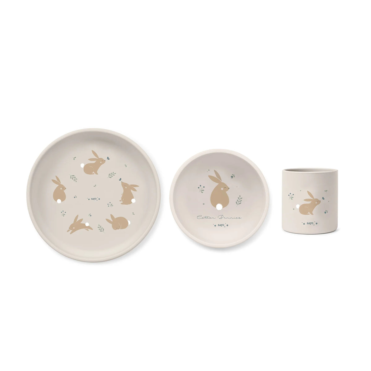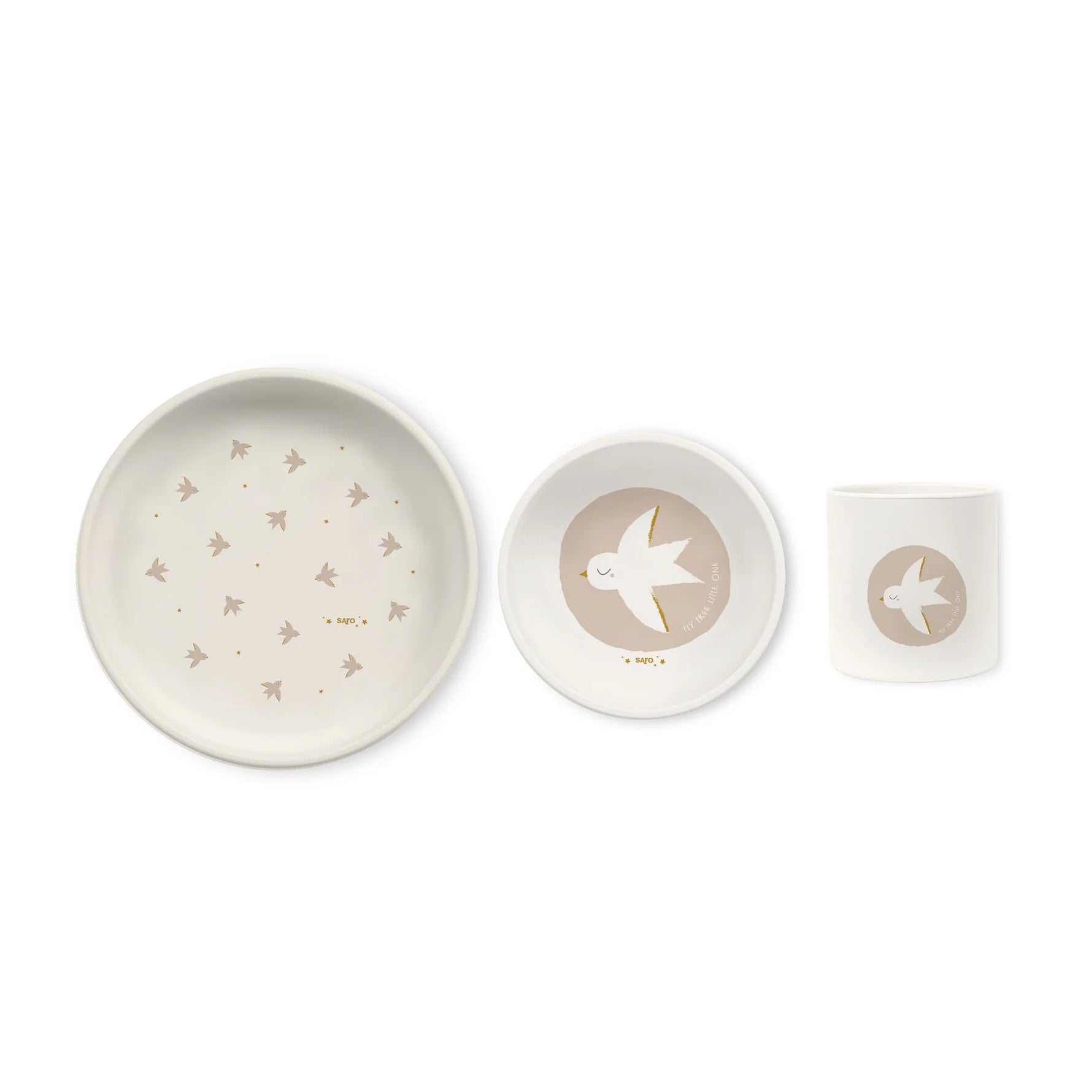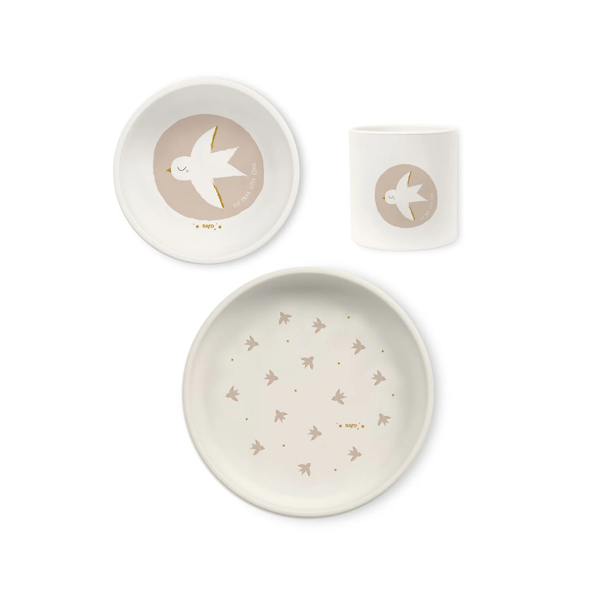• Plato llano y cuenco: Su diseño práctico y original, con bordes elevados, evita que se salga la comida. Es perfecto para iniciar la alimentación a demanda.