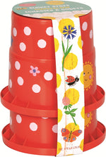 Esto permite que los verdaderos niños de verano se superen a sí mismos: los zancos en macetas con un divertido diseño de puntos entrenan las habilidades de equilibrio y coordinación y se pueden cargar hasta 70 kg.