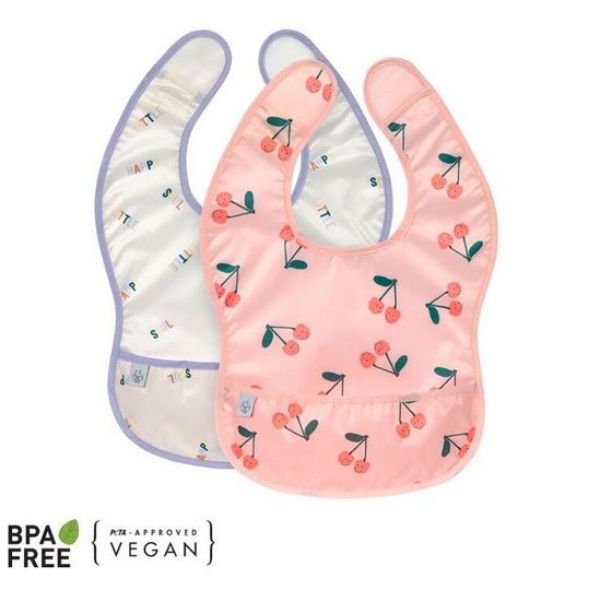 Baberos con bolsillo delantero y cierre de velcro ajustable en la parte posterior. Impermeables, ideales para comer o hacer manualidades en casa o en la guardería.