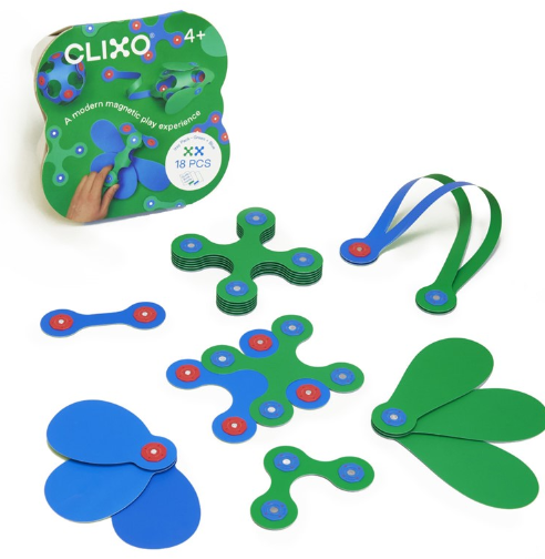 18 piezas en 6 formas únicas de CLIXO y una guía de inicio rápido, ¡Este pack de iniciación tiene el tamaño perfecto para llevarlo de viaje a cualquier sitio, y estará listo inmediatamente para jugar y empezar a construir allá donde estéis!