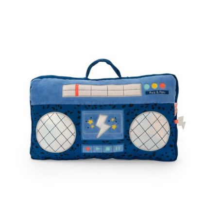 Descubre el cojín de radio del ratón y el Pilou de Moulin Roty, un bonito cojín para decorar la habitación del bebé y darle abrazos.