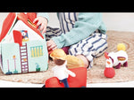 En la finca del granjero Fons hay un jolgorio muy animado. El burrito Ignace, el cerdo Simón, la vaca Rosalía, la oveja Yvon, la gallina Paulette y el pato Gaspard son los coloridos habitantes de esta granja. El granjero Fons merodea de aquí para allá con su tractor y se ocupa de que todo esté en orden. Cada uno de los animales que vive en la granja tiene su sitio propio. Puedes llevarte la granja y sus habitantes fácilmente gracias a su cierre y la práctica asa.