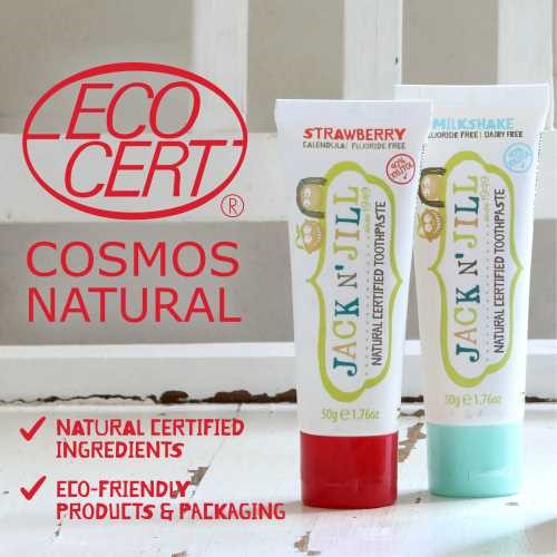 La pasta de dientes de la marca Jack and Jill es orgánica, fabricada con caléndula natural y con sabores orgánicos de diferentes frutas.