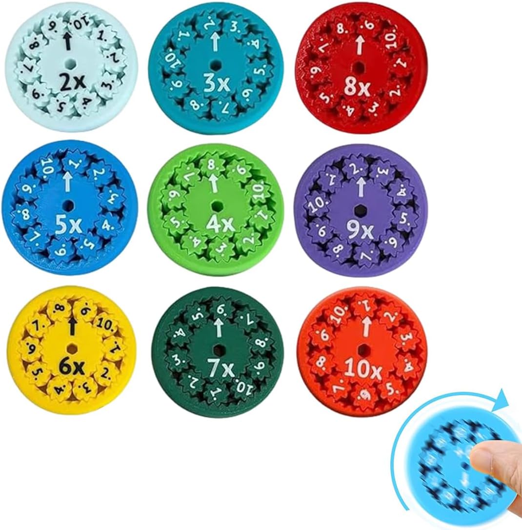 ¡Aprender las tablas de multiplicar nunca fue tan divertido! Math Twister es un set de 9 coloridos discos, uno por cada tabla del 2 al 10, que convierte la práctica del cálculo en un juego tipo spinner.