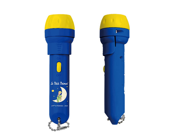 Linterna proyector de historias de "El Principito". Contiene la linterna y 3 discos con imágenes sin texto para dejar volar la imaginación. Incluye pilas.