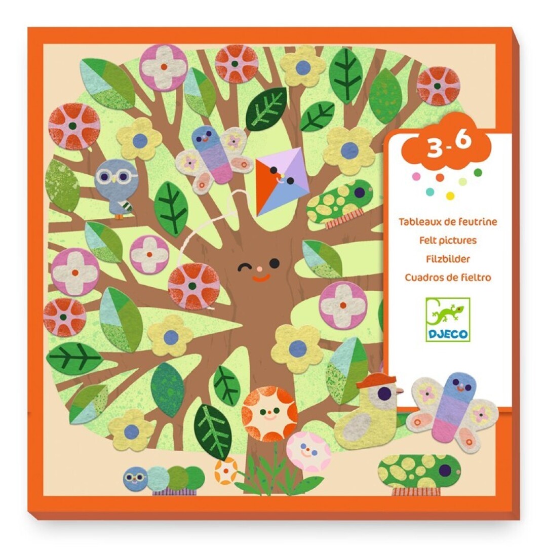 El set incluye 4 láminas ilustradas, 200 pegatinas de fieltro (1 hoja de pegatinas por lámina) y 1 folleto explicativo paso a paso.