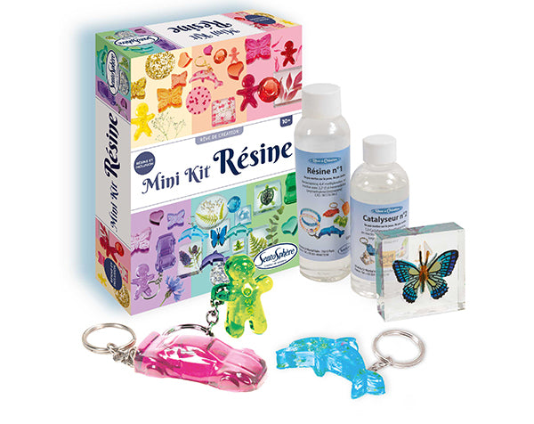 ¡Esta caja creativa te permite realizar maravillosas creaciones de resina con inclusiones de purpurina, flores secas, conchas o insectos para preservar tus recuerdos más bellos! Para hacer esto, simplemente mezcle la resina y el catalizador y luego vierta la mezcla en el molde provisto. ¡20 horas más tarde, estas creaciones se pueden desmoldar fácilmente para convertirse en magníficos posavasos! Una experiencia tan mágica como creativa ¡el único límite es la imaginación