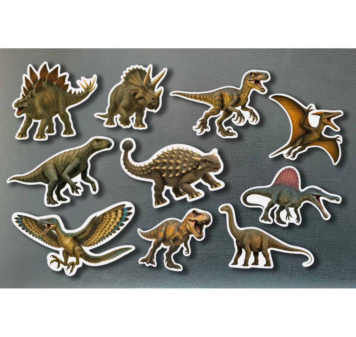 • Dinosaurios, incluye: Stegosaurus, Triceratops, Velociraptor, Pteranodon, Iguanodon, Ankylosaurus, Spinosaurus, Archeopteryx, Tyrannosaurus Rex y Diplodocus.
