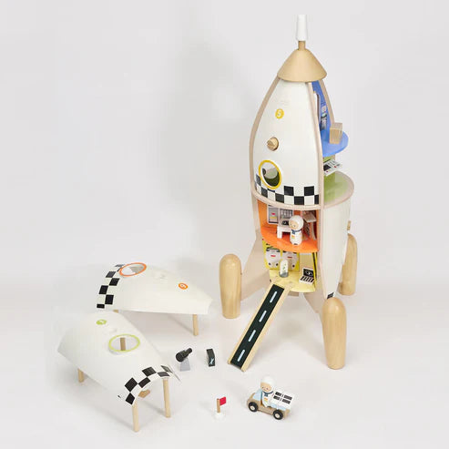 El cohete espacial es sin duda un juguete que combina perfectamente la construcción y el juego de roles. Este cohete dispone de 12 salas temáticas distintas como son el dormitorio, la sala de operaciones, el laboratorio, el gimnasio etc. Además incluye 2 astronautas, 1 coche espacial la posibilidad de construir un campamento para la expedición.