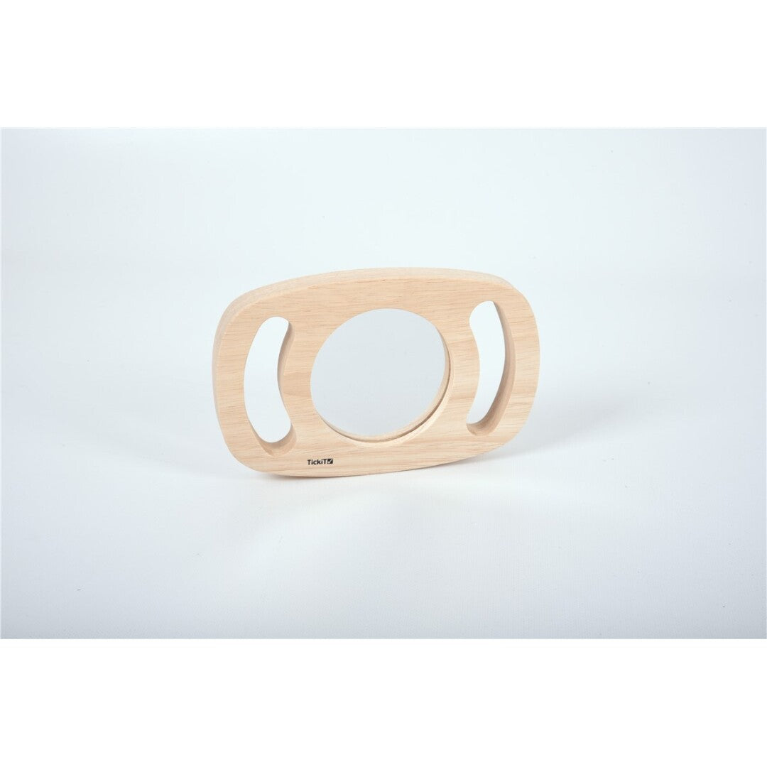 Nuestro espejo plano tickit ® Easy Hold es un marco de madera maciza de caucho con asas, fácil de sostener, que incluye un centro de espejo plano que ayudará a su hijo a interactuar con el mundo que lo rodea de una manera única. El espejo produce reflejos fascinantes para despertar la curiosidad de su hijo y favorece la autoidentificación.