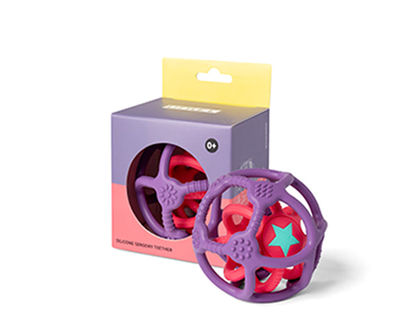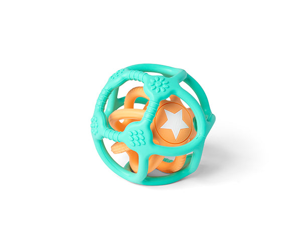 Pelota sensorial dos en uno.  Silicona grado alimentaria, sin tóxicos, libre de BPA,Latex, PVC y Phtalate