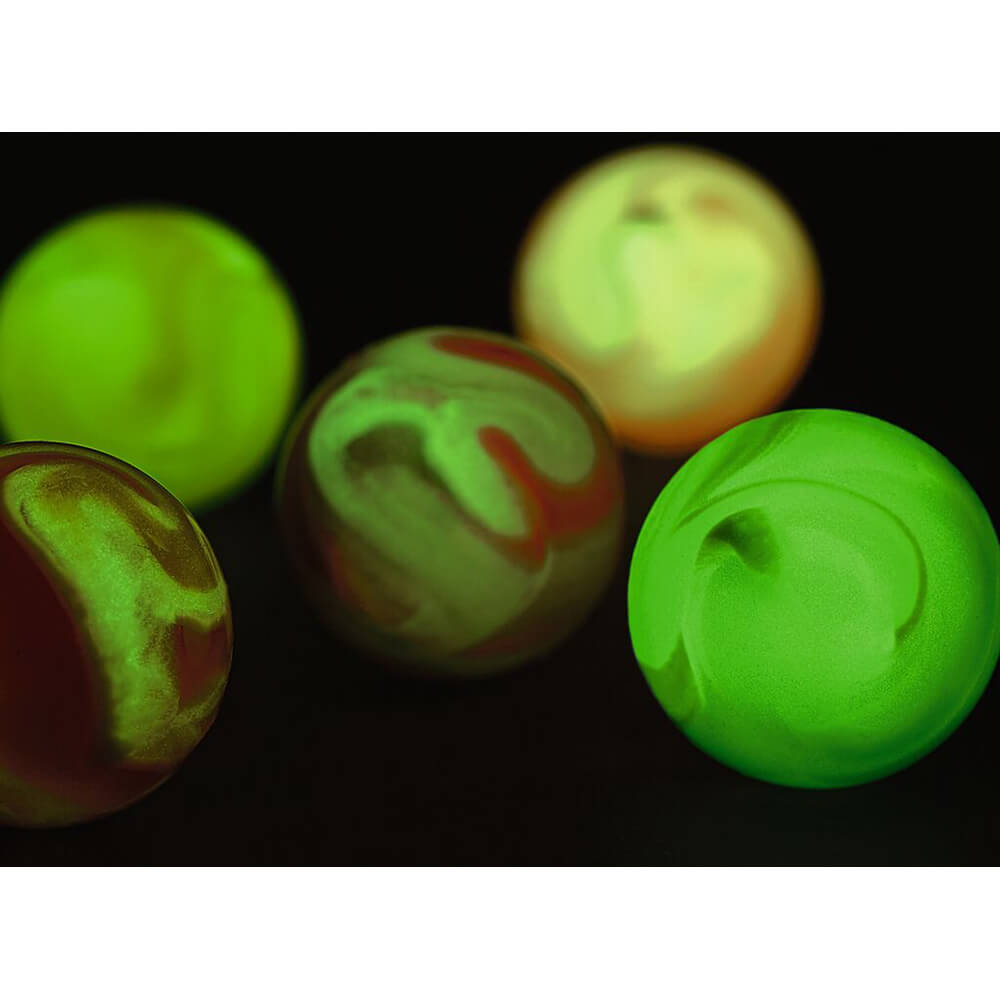 Pelota saltarina de goma coloridas de Galaxia, brillan en la oscuridad.