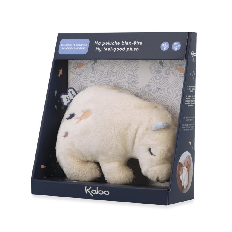 El bolsillo lleno de bolas de arcilla y flores de lavanda debe colocarse en el microondas o congelador para un efecto caliente o frío. El acceso a la bolsa está asegurado gracias a un sistema de velcro para un uso seguro. Con su forro suave, le dará al bebé tranquilidad y calma. Su vientre está recubierto con un estampado «danza de las olas» adornado con bordados de peces que recuerdan la calma de las profundidades del mar y la ola de suavidad y bienestar que aporta el peluche.