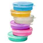 Plastilina moldeable y saltarina. De brillantes colores y con purpurina.