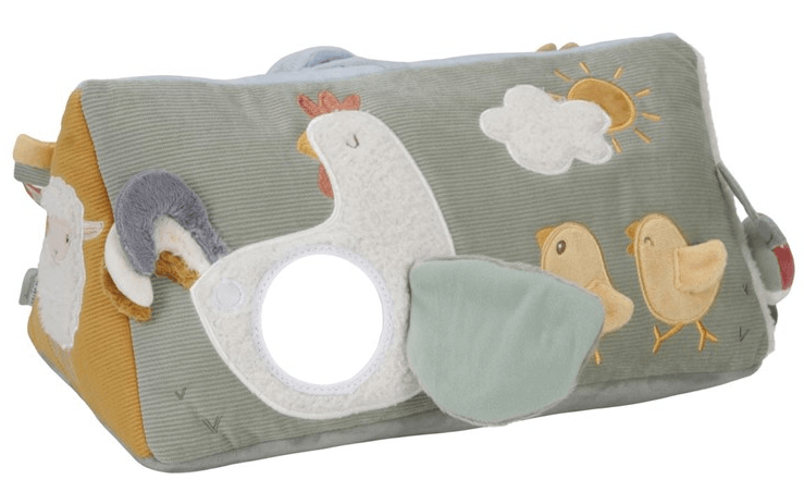 Este versátil cojín de actividades triangular les lleva a los bebés a una aventura mientras se apoyan sobre sus barriguitas. Por el camino, hay mucho por descubrir, desde las alas arrugadas de la gallina, a un espejo y un cascabel. El producto tiene características y texturas divertidas que estimulan los sentidos y la imaginación de tu bebé.