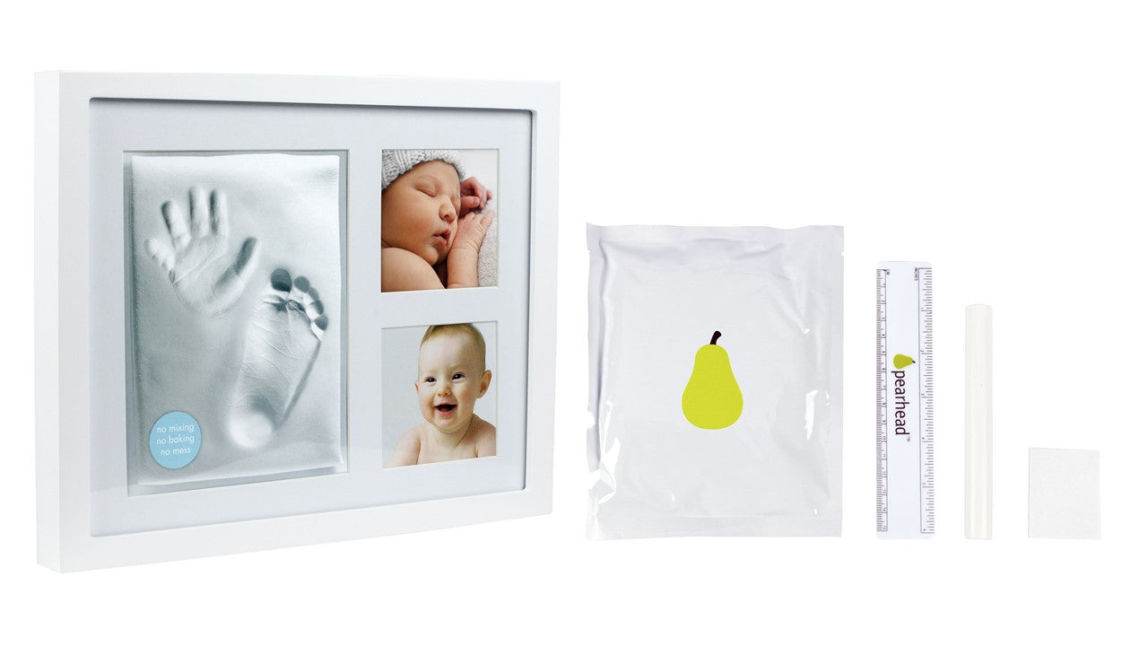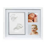 Este marco de madera blanca incluye todo lo que necesita para crear las huellas de su bebé. Se cuelga fácilmente en cualquier pared o se apoya en cualquier mesa.