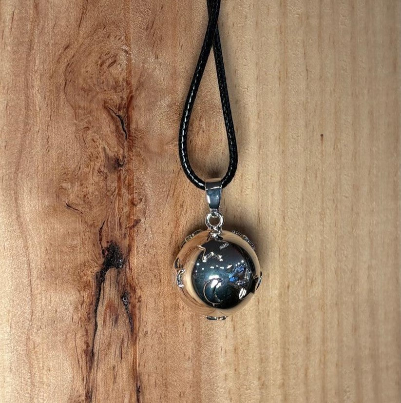 Colgante que se lleva cerca del vientre durante el embarazo. Se dice que el sonido suave y armonioso que produce la bola cuando se mueve ayuda a calmar y relajar al bebé. Los llamadores de ángel también se consideran un amuleto de la suerte para las mujeres embarazadas y sus bebés.