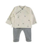 Conjunto primera puesta de dos piezas elaborado con algodón 100% orgánico, diseñado y producido en España y Portugal. Tejido de extrema suavidad pensado especialmente para las primeras puestas, teniendo en cuenta la delicada piel del bebé gracias a su características hipoalergénicas, su suavidad y transpirabilidad.