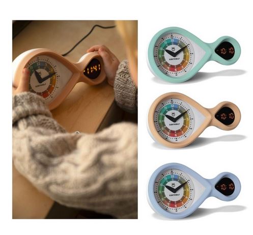 El reloj-despertador KidyAlarm es más que un simple despertador. Diseñado para ayudar a los peques a decir la hora, este despertador educativo crecerá con ellos gracias a sus 3 esferas escalables e intercambiables: una esfera (a partir de 6 años) les permitirá asociar los colores con horas completas mientras que las otras dos esferas (8 y 10 años) les ayudarán a comprender el concepto de horas y minutos.